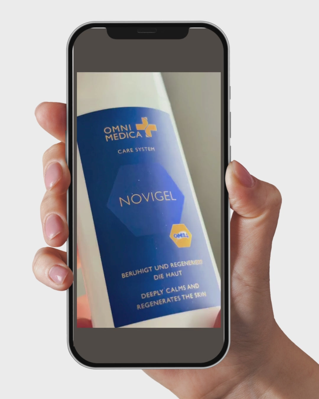 OMNIMEDICA NOVIGEL mit 2% OM24® Dieser Aktivkomplex neutralisiert freie Radikale, hemmt die Kollagenase und repariert das Hautgewebe. Das Konzentrat reduziert intensive Hautveränderungen, Narben, Altersflecken und Pickel, während es überbeanspruchte Haut tiefenwirksam erholt. Fettfrei und hautneutral, ist es auch ideal für empfindliche Kinderhaut.